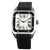 The 36mm stainless steel case of the Santos 100 W20106X8 is robust yet refined, featuring a square shape with rounded corners. Its polished and brushed surfaces create a striking contrast, while the signature octagonal crown set with a blue spinel adds a touch of elegance. The silvered opaline dial showcases Roman numeral hour markers, blued steel sword-shaped hands, and a date window at 6 o'clock, ensuring both style and functionality.