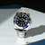 The Rolex GMT-Master II 116710BLNR, affectionately known as the "Batman Rolex," is a true icon of precision and style. Its brushed and polished 904L Oystersteel stainless steel case and matching Oyster bracelet exude a sense of rugged sophistication. The bidirectional rotating bezel showcases a striking black and blue Cerachrom ceramic insert with a 24-hour scale, while the black dial is adorned with luminescent hands and hour markers, offering unparalleled readability. The analog dial features a date display, magnified through a cyclops lens at 3 o'clock. The distinguishing feature of this watch is the arrow-tipped blue GMT hand, which gracefully circumnavigates the dial every 24 hours, enabling the tracking of a second time zone. Under the hood, the Rolex Caliber 3186, a self-winding automatic movement, holds the esteemed chronometer certification, ensuring exceptional accuracy. With a 48-hour power reserve, 28,800 vph beat rate, and 31 jewels, it's as reliable as it is precise. A scratch-resistant sapphire crystal protects the dial, while the watch is secured by a Triplock triple waterproofness system on the screw-down crown. The case back is also screw-locked for added protection. The folding Oysterlock safety clasp features an Easylink 5mm comfort extension link, ensuring a secure and comfortable fit. With a water resistance of 100 meters (330 feet), it's a watch built for adventure. Its functions include hours, minutes, seconds, date, and GMT second time zone, making it a luxury Swiss-made timepiece that's truly exceptional.