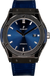 The blue rubber strap, with its comfortable and sporty appeal, complements the titanium case flawlessly, creating a cohesive and stylish look. The deployment clasp ensures a secure and comfortable fit on the wrist.