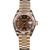 Exuding luxury and sophistication, this timepiece showcases a 28mm case fashioned from exquisite 18K Everose gold. The watch is designed with a screw-down back and a screw-down crown featuring the twinlock double waterproofness system, ensuring its robustness and durability. A fluted bezel adds a touch of elegance to the design, while a scratch-resistant sapphire crystal, featuring a cyclops lens for date magnification, enhances readability.