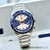 The Tudor Heritage Chrono 70330B is a distinguished men's watch that seamlessly blends sporty design with impressive functionality. Its brushed and polished stainless steel case and steel bracelet exude durability and refinement, making it a versatile timepiece for various occasions. The watch features a polished stainless steel bidirectional rotating bezel with a striking blue disc and 12-hour graduations, adding a pop of color and utility to its design. The dial showcases a date window at 6 o'clock, a chronograph function with a large central chronograph seconds hand, and a 45-minute counter sub-dial at 9 o'clock. Additionally, it boasts a small seconds sub-dial at 3 o'clock and a GMT second-time zone feature, enhancing its practicality for globetrotters. Powering this impressive watch is the Tudor Caliber 2892, a self-winding automatic movement with a 42-hour power reserve, a beat rate of 28,800 vibrations per hour, and 55 jewels, ensuring precision and reliability. The scratch-resistant sapphire crystal protects the dial, while the round case measures 42mm in diameter and 13mm in thickness, with an inlet size of 22mm. The Tudor Heritage Chrono 70330B features a screw-down crown and chronograph pushers, providing water resistance to 150 meters (500 feet). Its functions include hours, minutes, small seconds, date, chronograph, and GMT, making it an ideal sport watch that proudly bears the "Swiss Made" label.