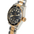The Tudor Heritage Black Bay S&G 79733N is a distinguished men's watch that seamlessly combines classic style with robust functionality. Its unidirectional rotating bezel, crafted from yellow gold and adorned with a matte black anodized aluminum disc and golden 60-minute scale, adds a touch of luxury and utility to the timepiece. The watch features a dial with luminescent hands, dots, and index hour markers, ensuring excellent visibility in various lighting conditions. A date window is thoughtfully positioned at 3 o'clock, adding practicality to its design.